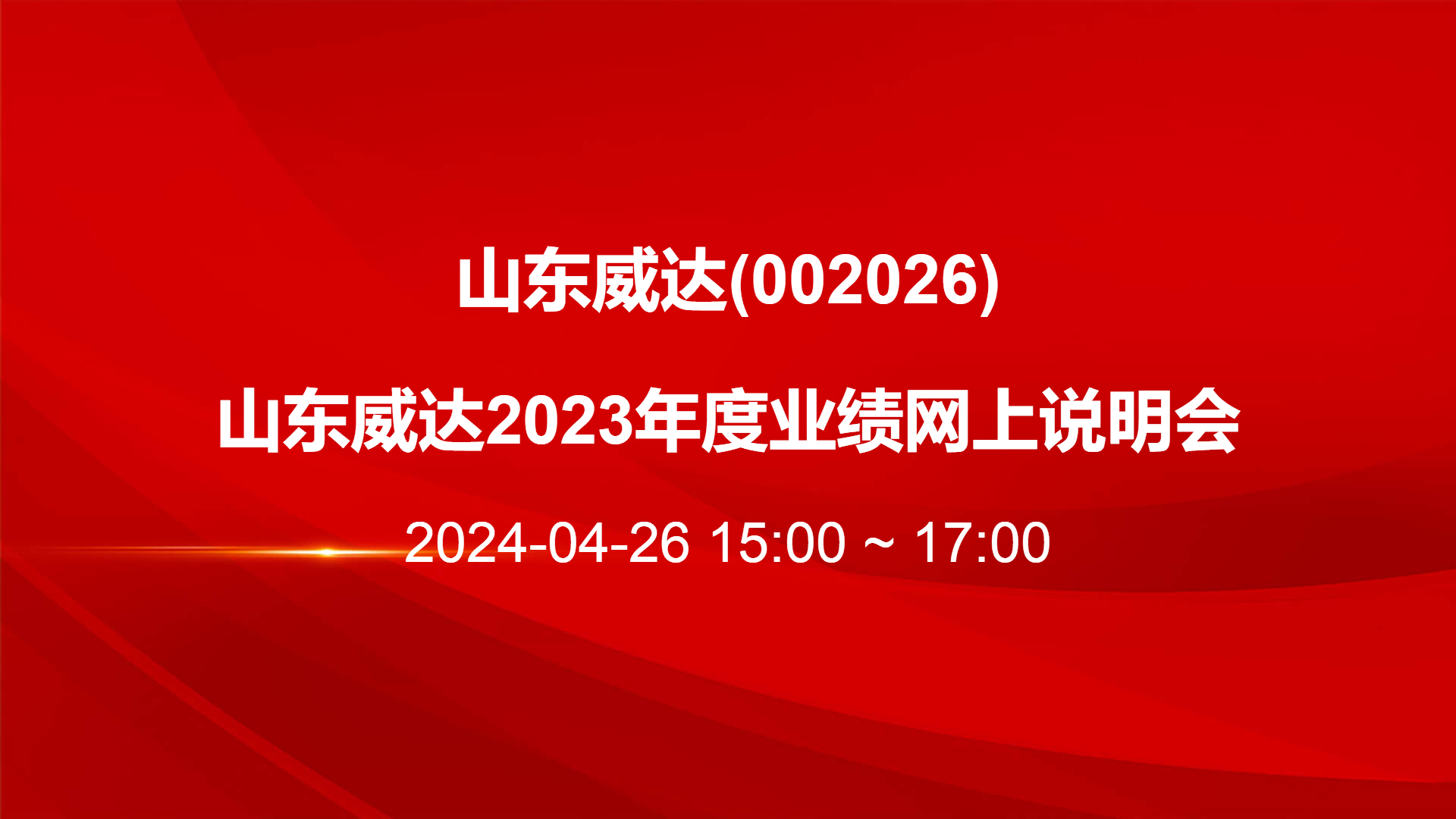 山东威达机械股份有限公司(以下简称“公司”)定于 2024 年 4 月 26 日(星期五)下午 15:00-17:00 在全景网举办 2023 年年度报告网上业绩说明会,投资者可登陆全景网“投资者关系互动平台”(https://ir.p5w.net)参与本次年度业绩说明会。 出席本次说明会的人员有:公司副董事长杨桂军先生、董事兼总经理刘友财先生、独立董事黄宾先生、财务负责人张明明先生、董事会秘书张红江先生。欢迎广大投资者积极参与本次业绩网上说明会。