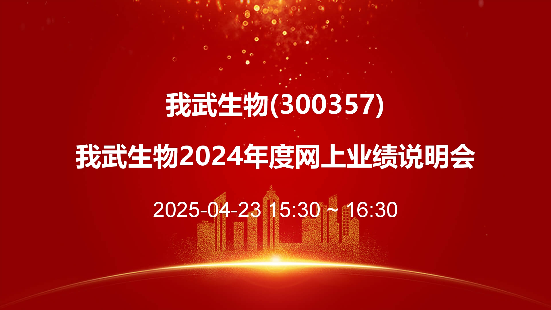 浙江我武生物科技股份有限公司(以下简称“公司”)2024年年度报告于2025年4月19日深圳证券交易所网站和符合中国证监会规定条件的媒体上披露,为让广大投资者进一步了解公司2024年年度报告及经营情况,公司将于2025年4月23日15:30-16:30在全景网举办2024年度业绩说明会,本次年度业绩说明会将采用网络远程的方式举行,投资者可登陆全景网“投资者关系互动平台”(http://ir.p5w.net)参与本次年度业绩说明会。