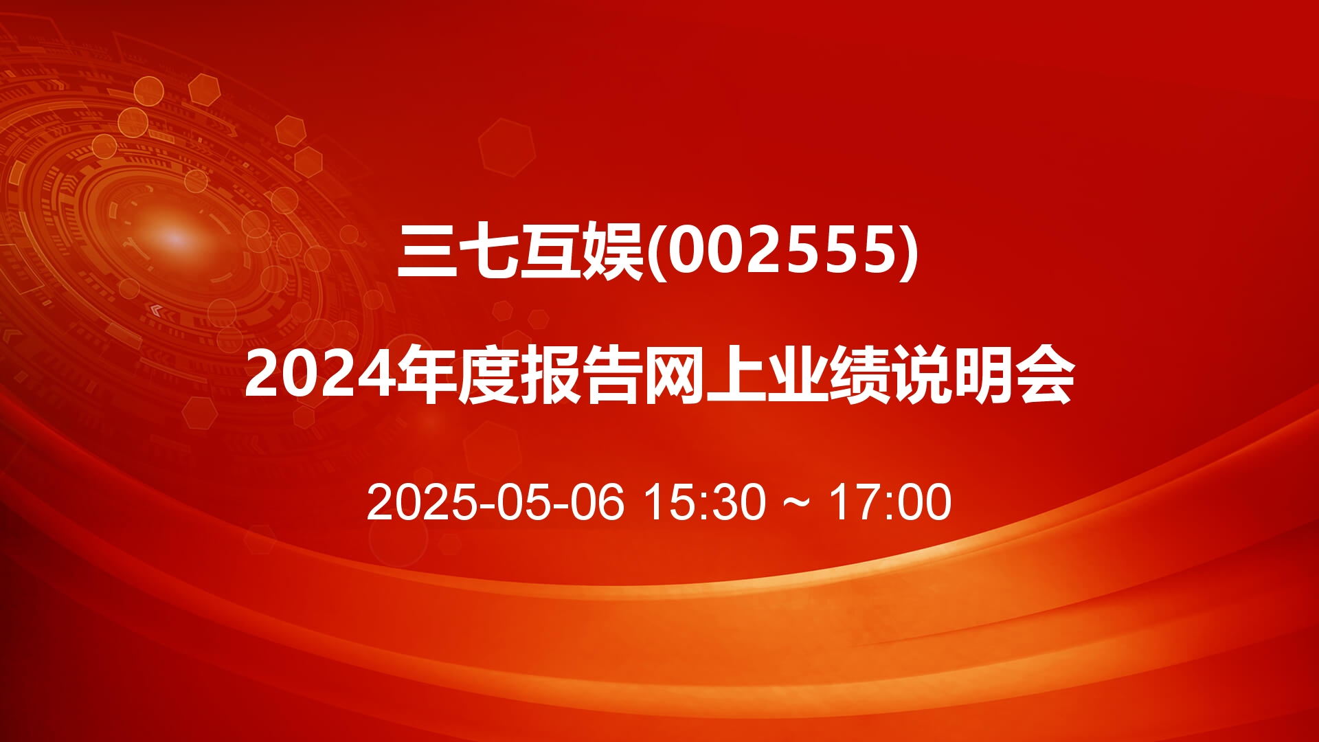 三七互娱网络科技集团股份有限公司(以下简称“公司”)将于2025年5月6日(星期二)下午15:30—17:00举行2024年度报告网上业绩说明会,本次年度报告说明会将采用网络远程方式举行,投资者可登录全景网“投资者关系互动平台”(https://ir.p5w.net)参与本次说明会。