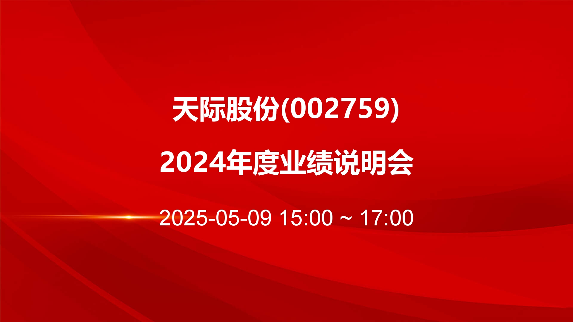 天际股份2024年度业绩说明会将于2025年5月9日(周五)15:00-17:00在全景路演网络平台举行,欢迎各位投资者积极参与!