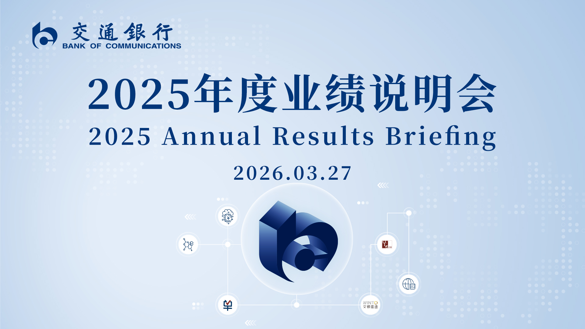 交通银行2025年度业绩说明会将于2026年3月27日(周五)17:00-18:30举办,欢迎您的关注。