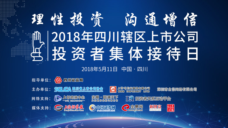 为贯彻落实党的十九大精神,以习近平新时代中国特色社会主义思想为引领,充分发挥资本市场在资源配置中的重要作用,牢固树立高质量发展的目标,同时响应2018年四川证监局上市公司监管会议提出的继续坚持稳中求进工作总基调,采取多元化方式回报投资者,进一步提升信息披露的有效性和时效性,切实维护投资者的知情权。在四川证监局的指导下,由四川省上市公司协会、上证所信息网络有限公司、深圳市全景网络有限公司合办的“理性投资 沟通增信--2018年四川辖区上市公司投资者集体接待日”活动定于5月11日举办,以搭建上市公司与投资者直接、有效、透明的沟通平台。