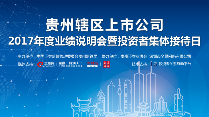 为推动辖区上市公司进一步做好投资者关系管理工作,强化辖区上市公司与广大投资者的日常交流,促进辖区上市公司不断提高透明度和治理水平,在贵州证监局指导下,贵州证券业协会联合深圳市全景网络有限公司举办“真诚沟通 规范发展——贵州辖区上市公司2017年度业绩说明会暨投资者集体接待日”活动。