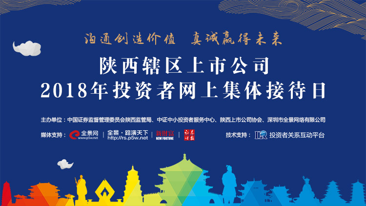为促进上市公司规范运作、健康发展,增强上市公司信息透明度,加强与广大投资者沟通交流,进一步提升投资者关系管理水平,陕西证监局决定联合中证中小投资者服务中心、陕西上市公司协会和深圳市全景网络有限公司举办“沟通创造价值 真诚赢得未来——陕西辖区上市公司2018年投资者网上集体接待日”。
